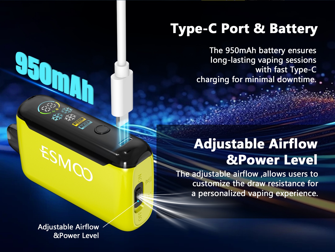 ESMOO Disposable Pod Electronic Cigarette 12000 Puffs 4 Level Cooling Adjustable