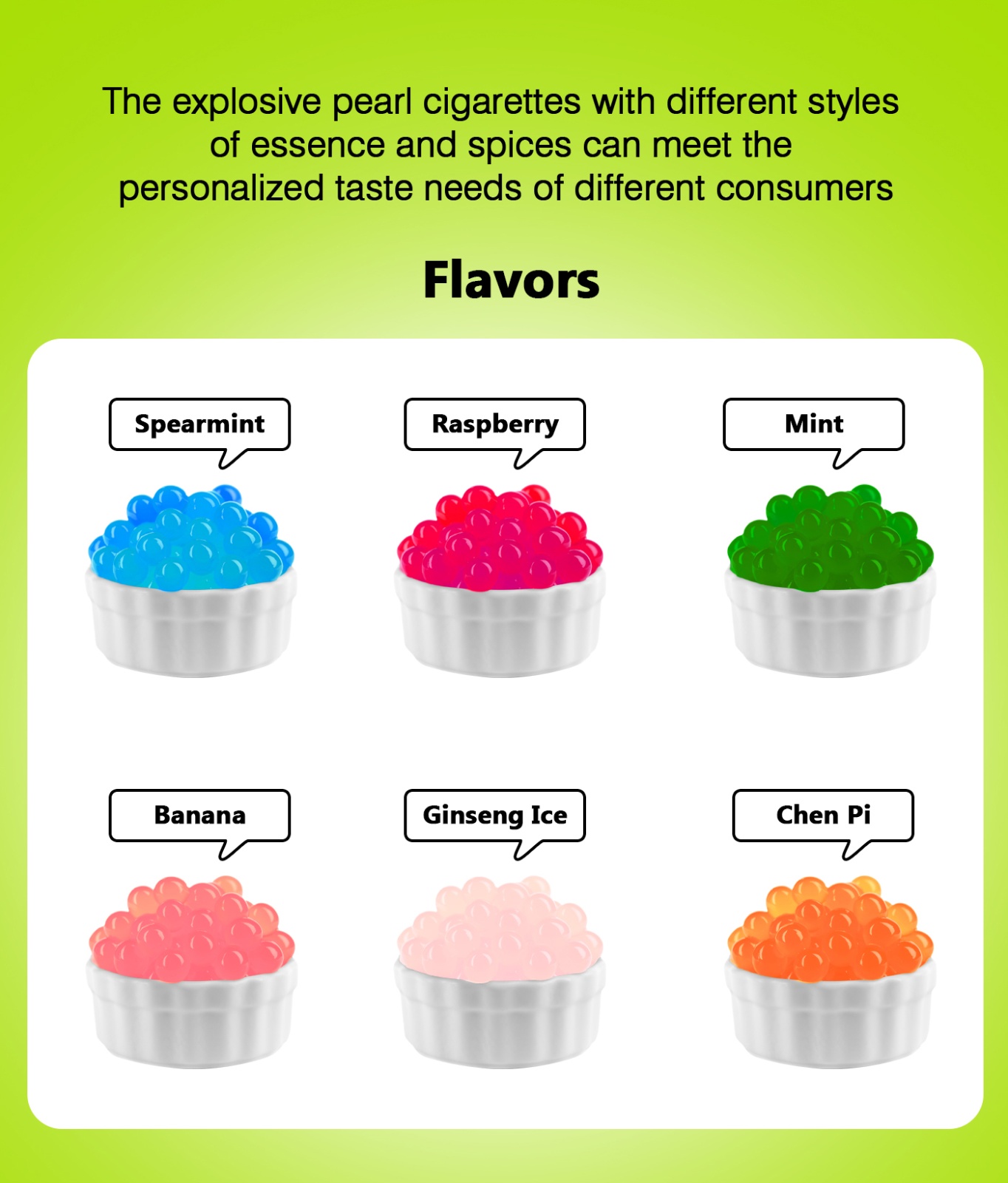 7 The explosive pearl cigarettes with different styles of essence and spices can meet the personalized taste needs of different consumers