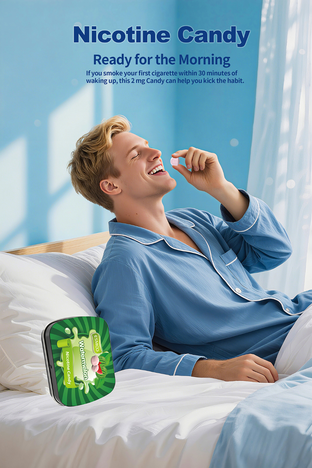 ESMOO quiting smoking candy is esigned to wean your body off of cigarettes for those who smoke their first cigarette after waking up.It can help reduce your body's cravings for nicotine.Coated for extreme different flavors that you can make options,chieve your smoke- free life.If you smoke your first cigarette more than 30 minutes after waking up,please use Nicotine candy 2 mg, but if within 30 minutes of waking up,it is 4mg.