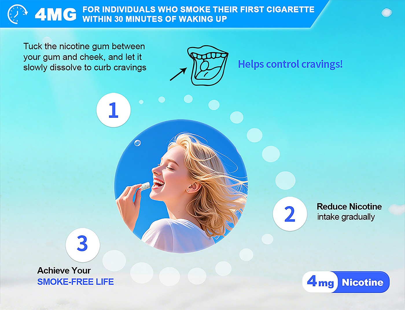 If you smoke your first cigarette more than 30 minutes after waking up,please use Nicotine Gum 2 mg, but if within 30 minutes of waking up,it is 4mg.