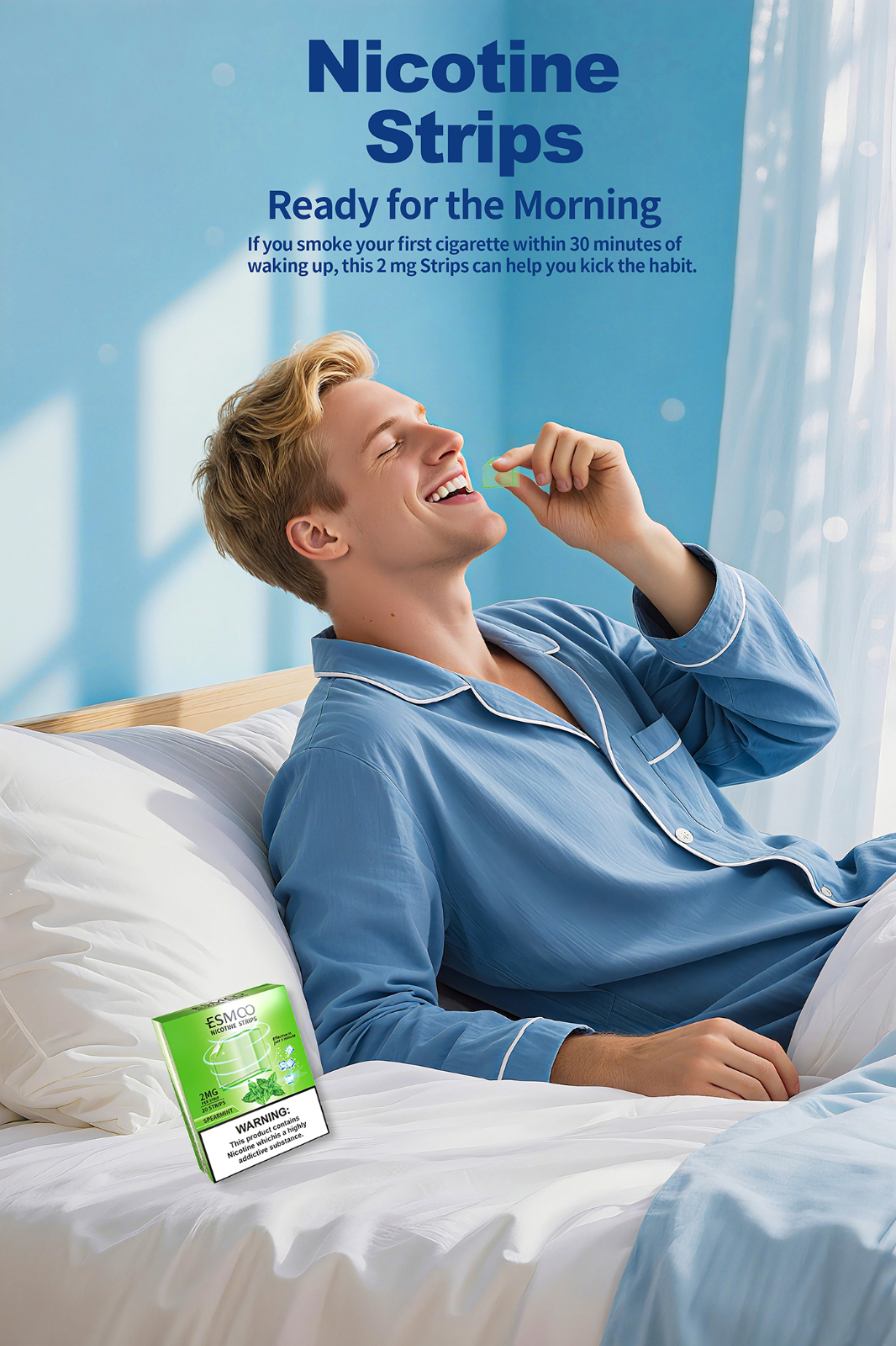 ESMOO quiting smoking oral strip is esigned to wean your body off of cigarettes for those who smoke their first cigarette after waking up.