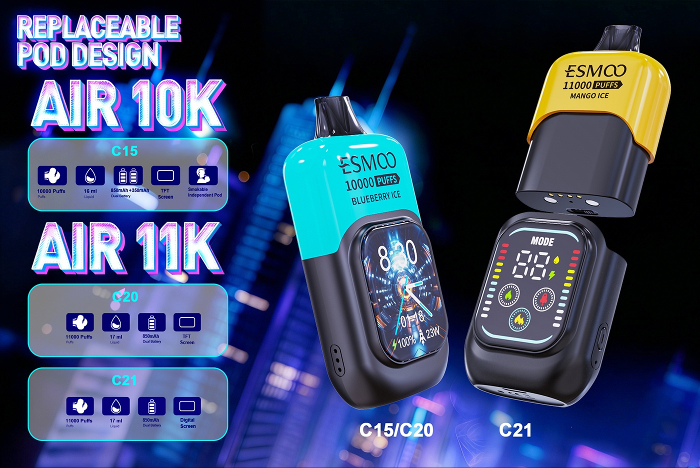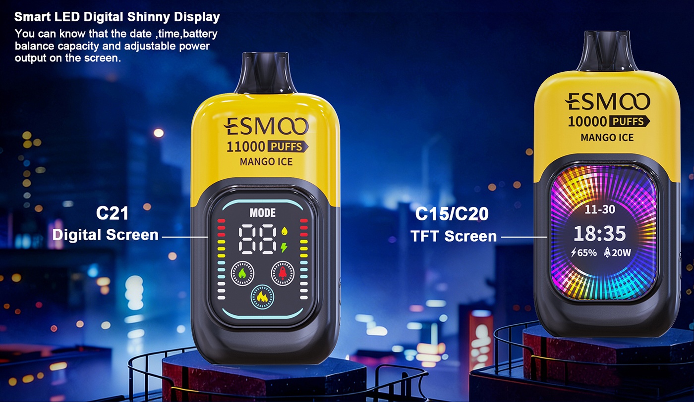 ESMOO 20 Replaceable Pod Electronic Cigarette Kits 10000 Puffs LED Shinny TFT Screen