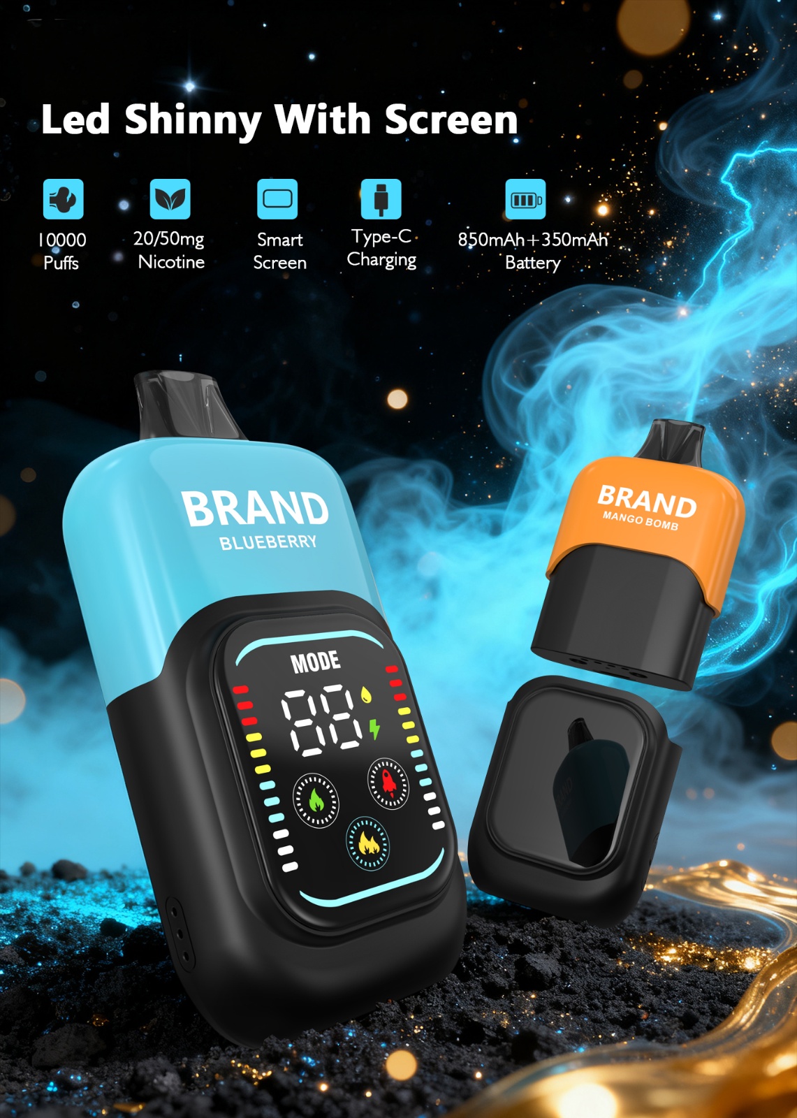 C15 Replaceable Pod Electronic Cigarette Kits 10000 Puffs LED Shinny With Screen