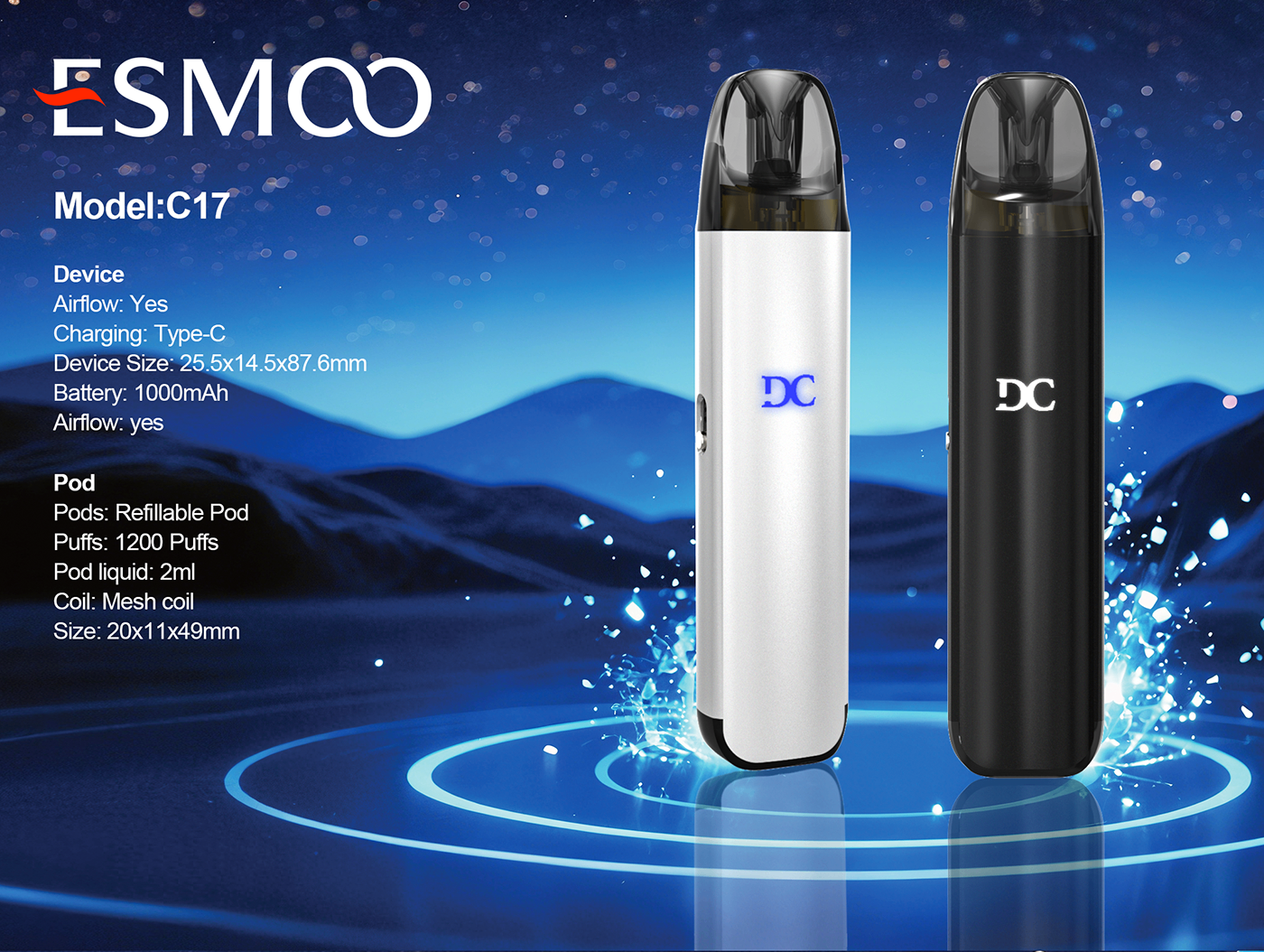 ESMOO Electronic Cigarette C17 Refillable Pod 2ml E-juice 1200 Puffs With Mesh Coil
